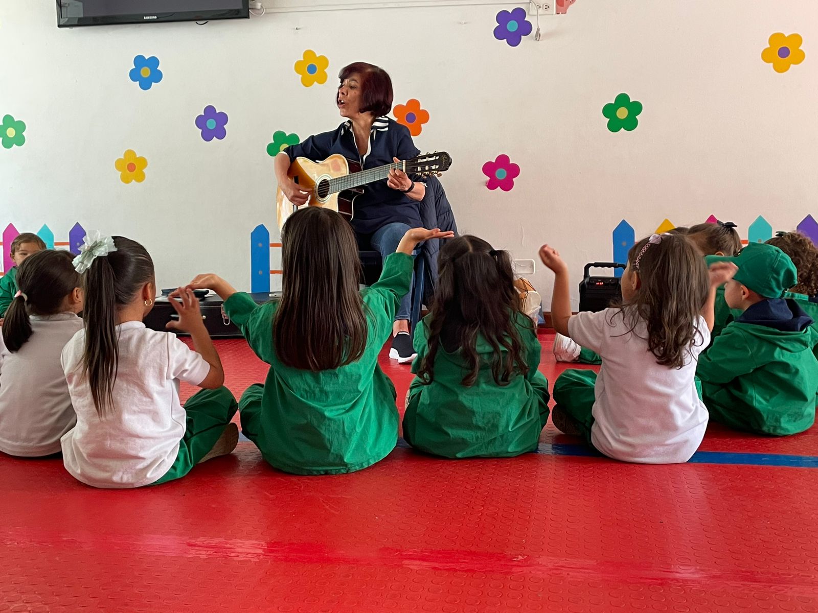 Contamos con clases especificas de música donde los niños reciben estímulo que potencia las habilidades de habla, escucha, expresión y despertar de habilidades artísticas.